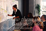 Listen as Peter explains his entry into the field via a temp agency ad in 1996 … to his creation of the Center for Graphic Facilitation (a growing online hub for info graphics). Based in Pittsburgh, he explains the ‘family tree’ of many East Coast practitioners of the work as well as a new documentation technology (called Missing Link) that his studio is working on to make graphic meeting outputs much more accessible and user friendly. He also gives tips to newcomers (steal, steal, steal) and shares his thoughts about the future of our very interesting field.