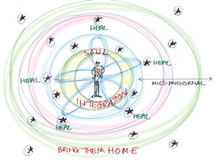 Am also having a blast in my expanded collaboration with THEO and Sheila & Marcus Gillette. While they won't make much sense out of their context, here are a few sketches from our Thrive in the Time of Awakening program. Hopefully they convey the shift from fragmentation to integration that this special container is all about. I myself had HUGE SHIFTS happen during and after last year's offering so I'm so curious to see what this year's results will be ... fasten our seatbelts!