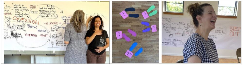 Working Visually: While facilitating the inner work, I simultaneously draw simple graphic notes. Online (using a digital tablet with drawing software). In-person (using large sheets of mural paper with markers). Handy templates, eBooks and other resources are provided.